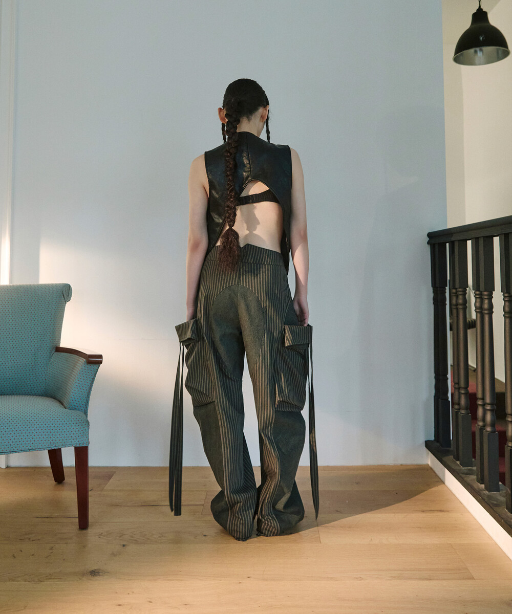 -스트라이프 패치워크 카고바지