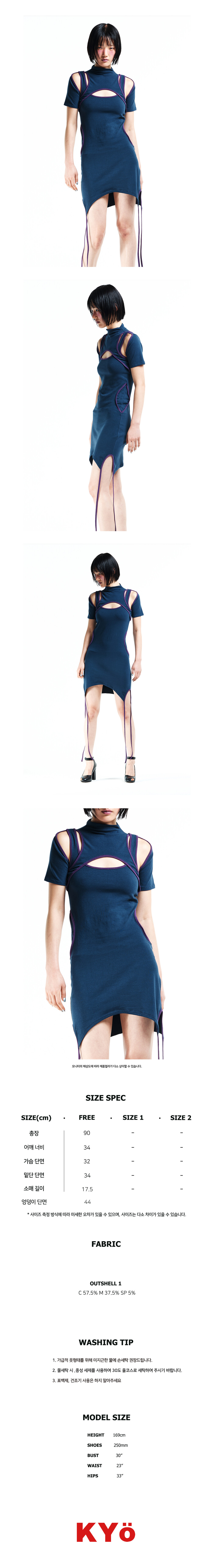 COLOR CONTRAST HALFNECK CUTOUT MIDI DRESS