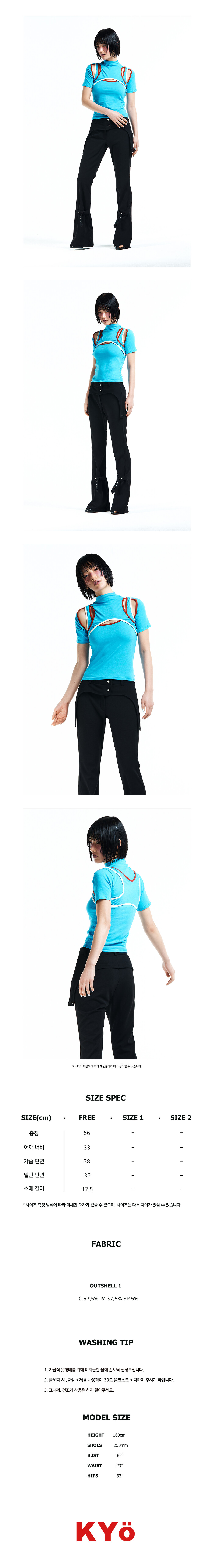 COLOR CONTRAST HALFNECK CUTOUT TEE (BLUE)